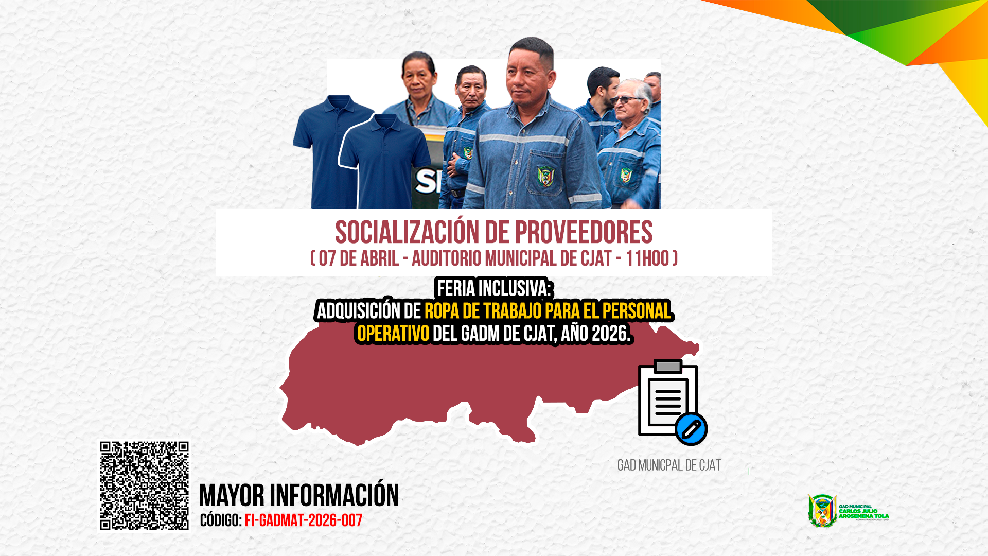 Somos un Gobierno Municipal que a través de una administración eficiente fomenta el desarrollo integral del cantón
